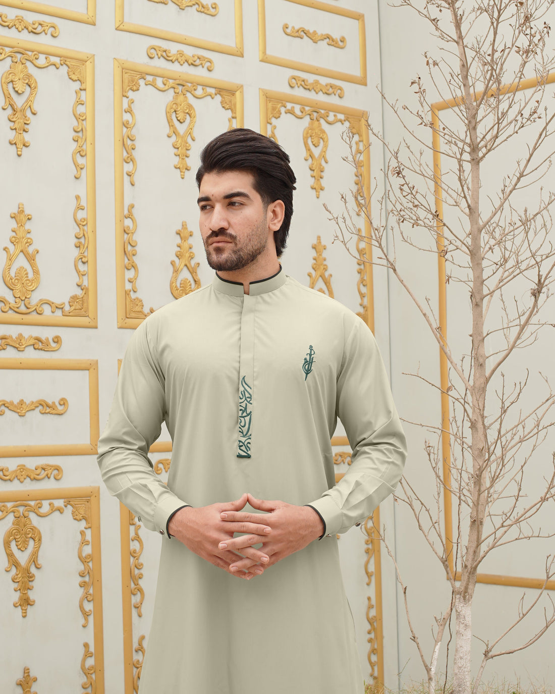 Fabric is Egyptian Cotton with Olive Green embroidery (Arabic Letters) and Al Ameer logo Color...