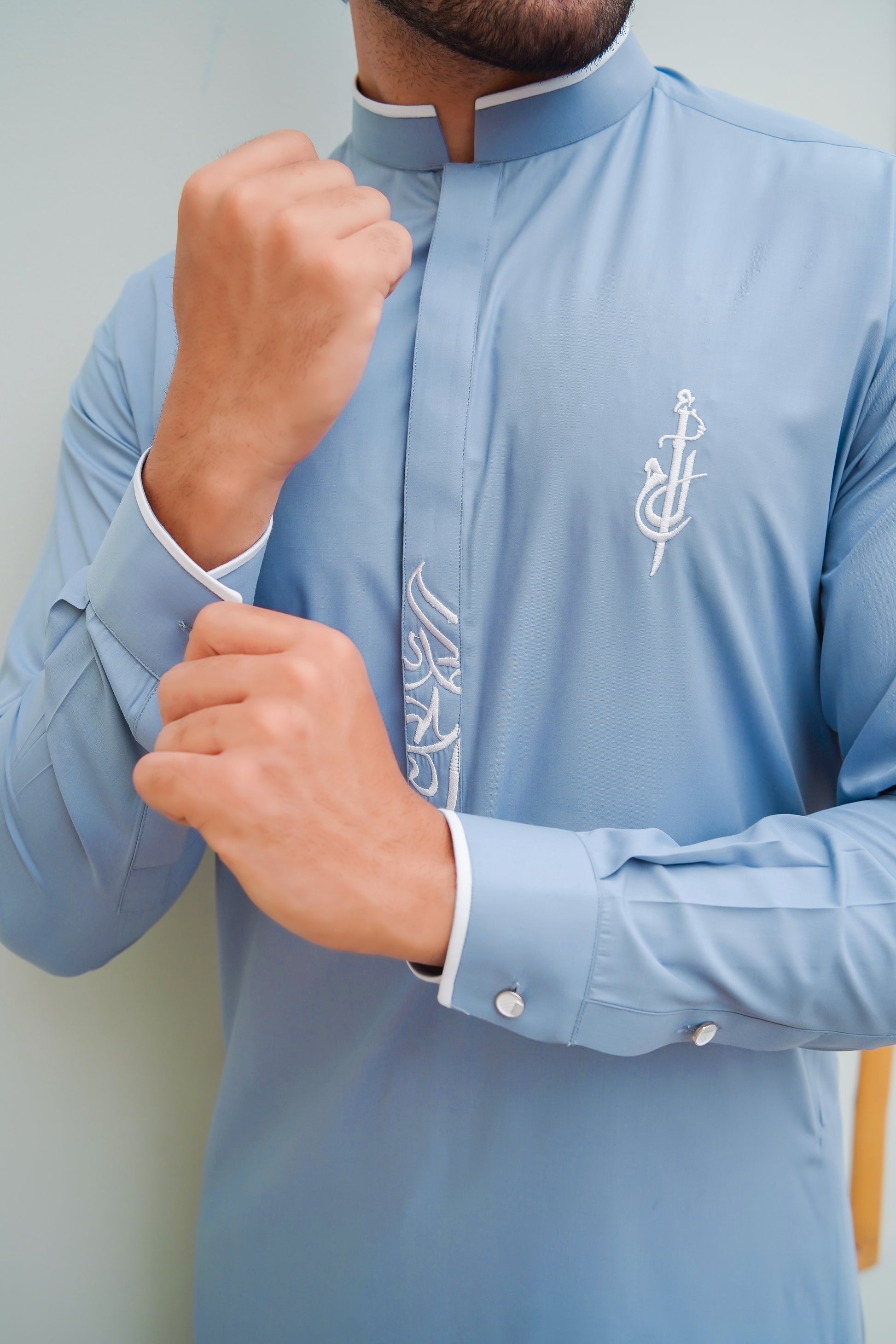 Fabric is Egyptian Cotton with White embroidery (Arabic Letters) and Al Ameer logo