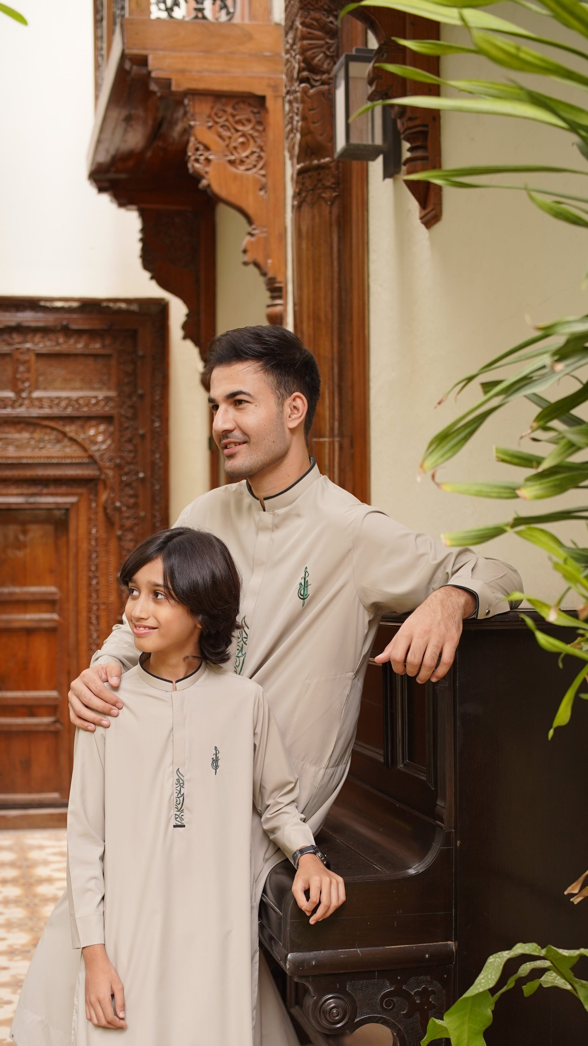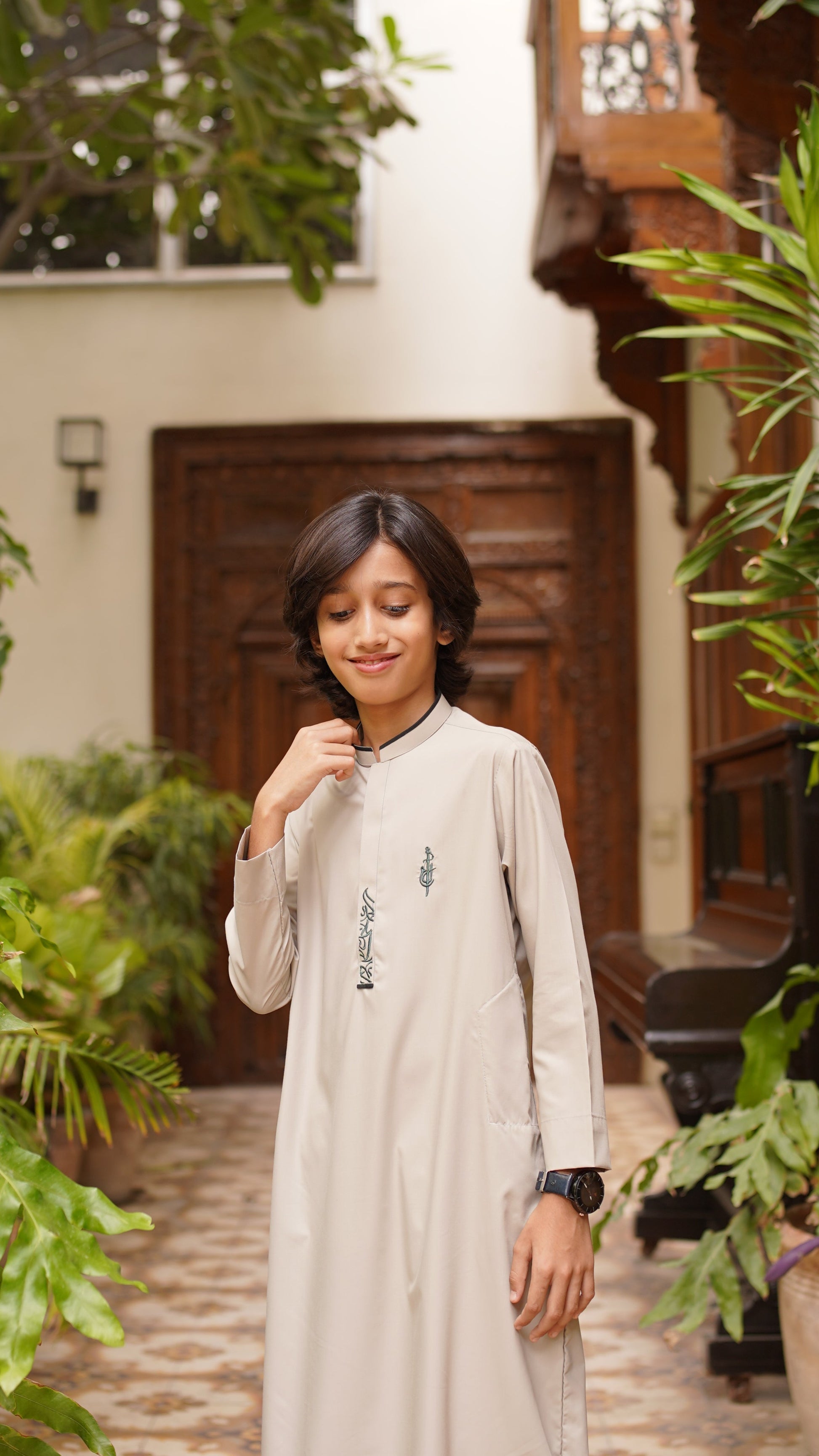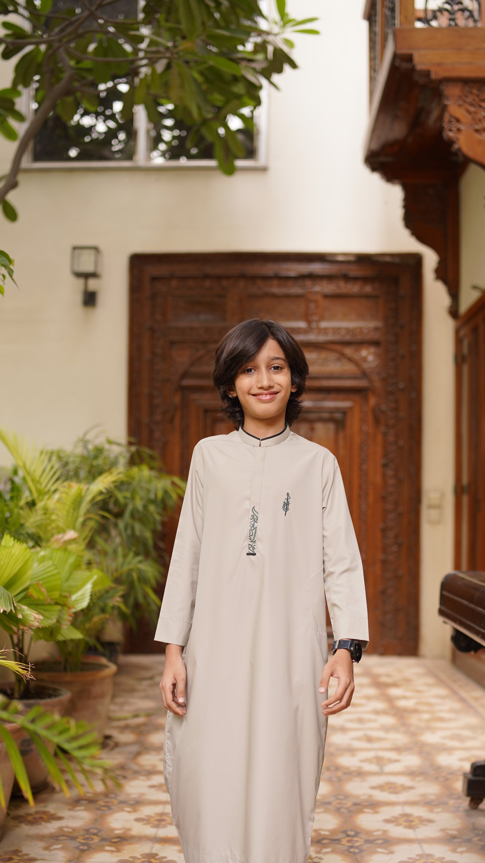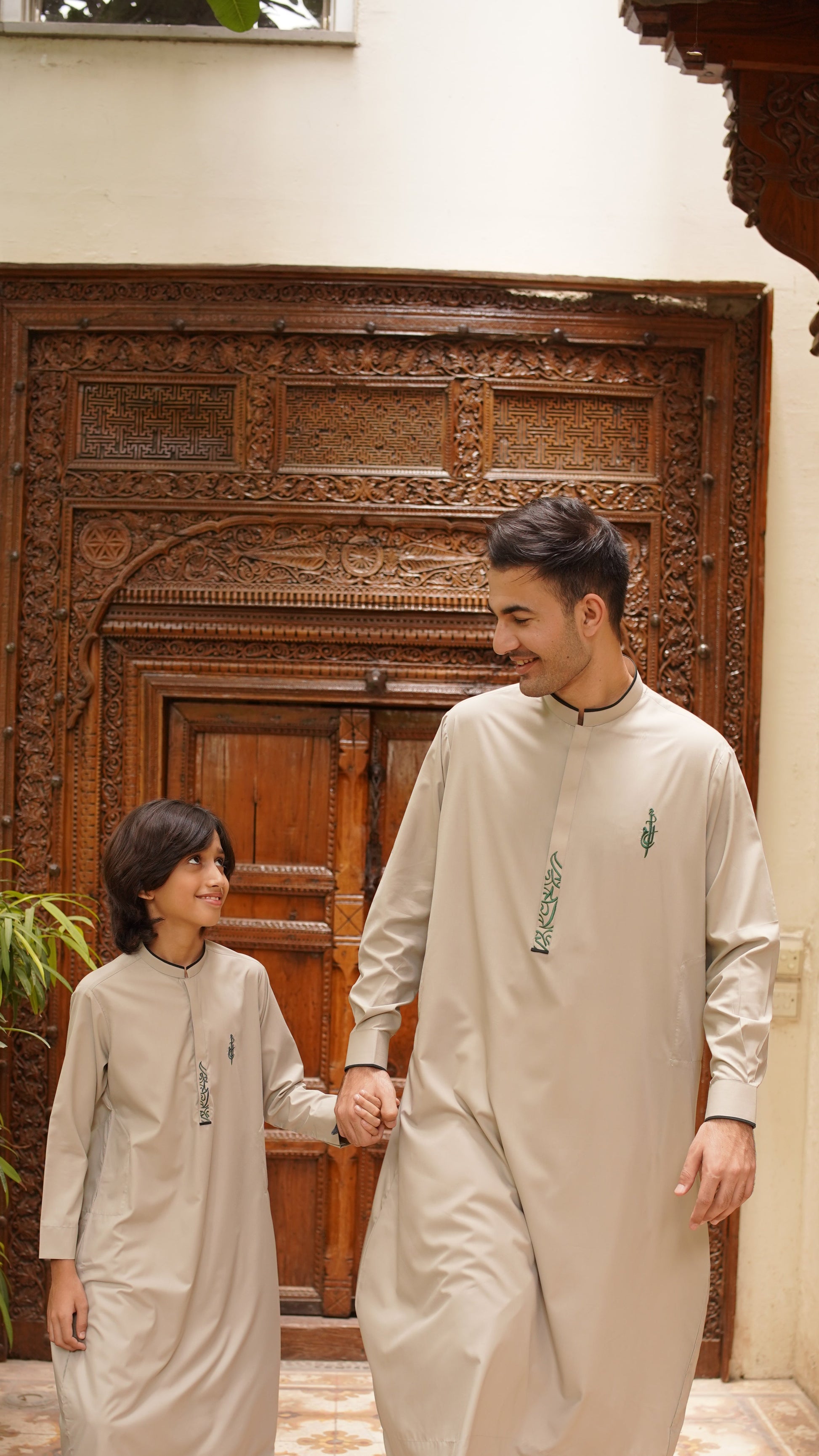 Fabric is Egyptian Cotton with Olive Green embroidery (Arabic Letters) and Al Ameer logo