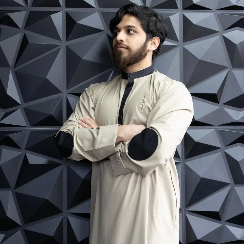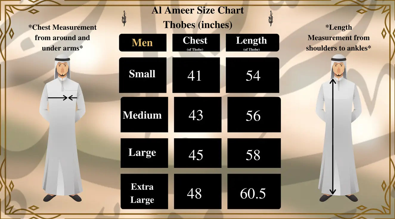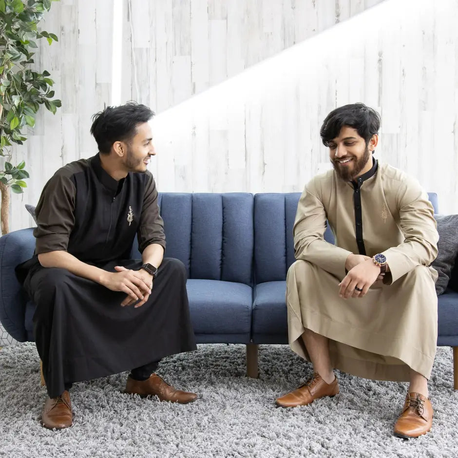 Al Ameer signature thobes are not only stylish but also comfortable- the soft and smooth cotton feels great on your skin. Since thobes are ankle-length & one-piece, it fits the sunnah description of modest clothing for men. Al Ardh is in the color coffee and black. It includes pockets on both sides for convenience.