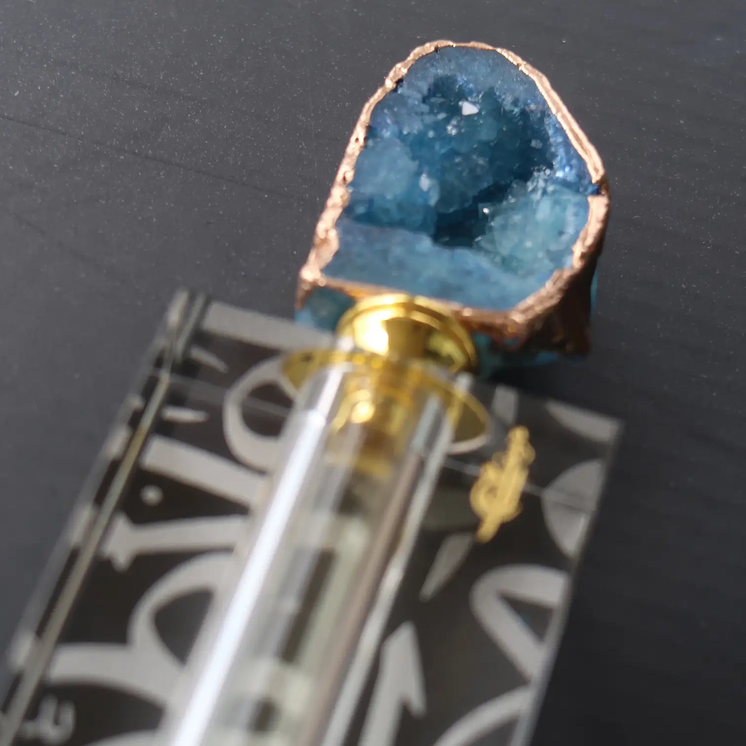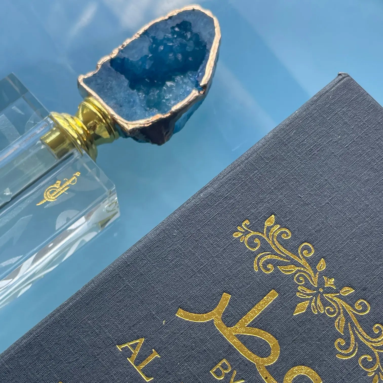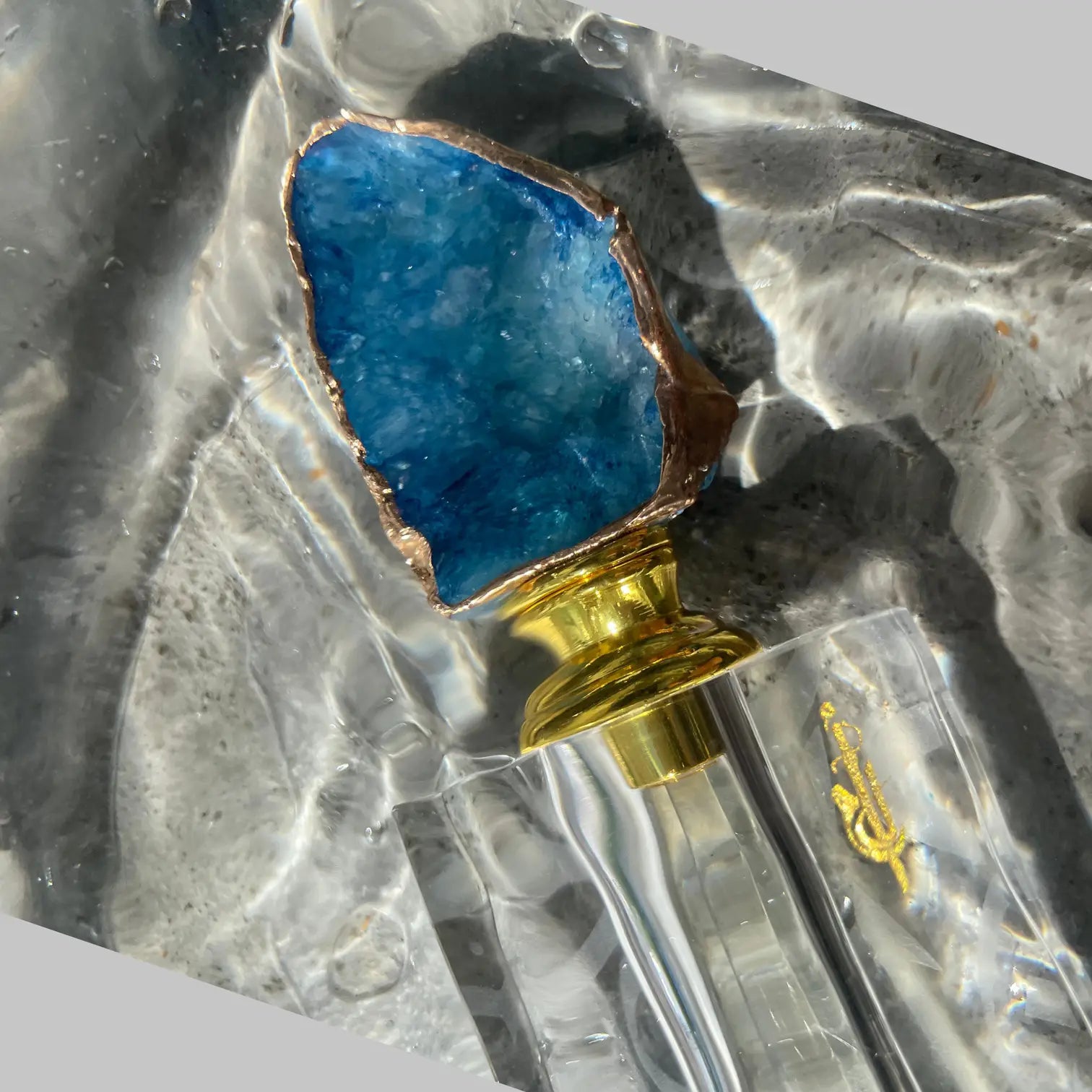 The bottle cap for each Attar is real agate crystal.