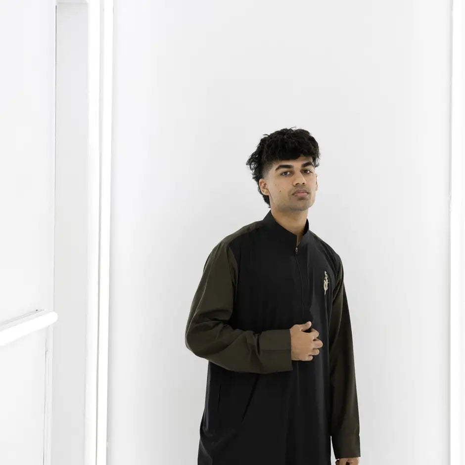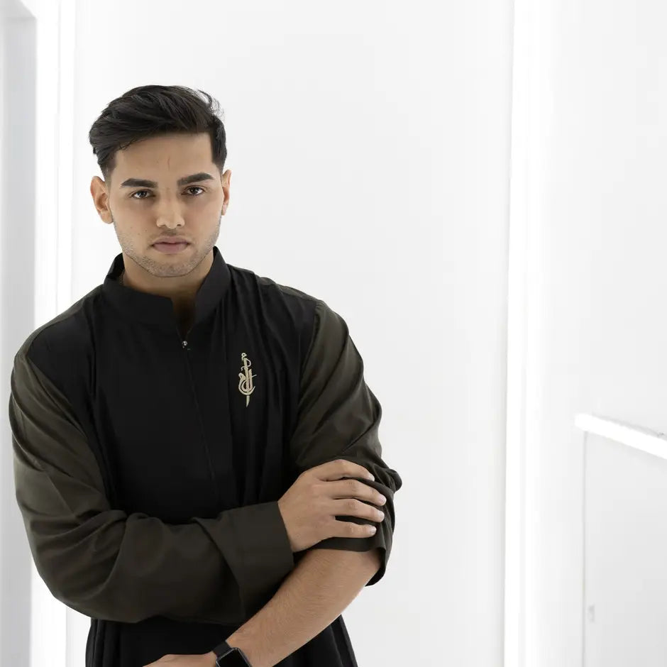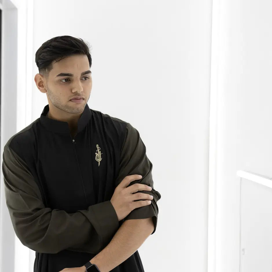 Al Ameer signature thobes are not only stylish but also comfortable- the soft and smooth cotton feels great on your skin. Since thobes are ankle-length & one-piece, it fits the sunnah description of modest clothing for men. Lahr is in the color black and olive green. It includes pockets on both sides for convenience.