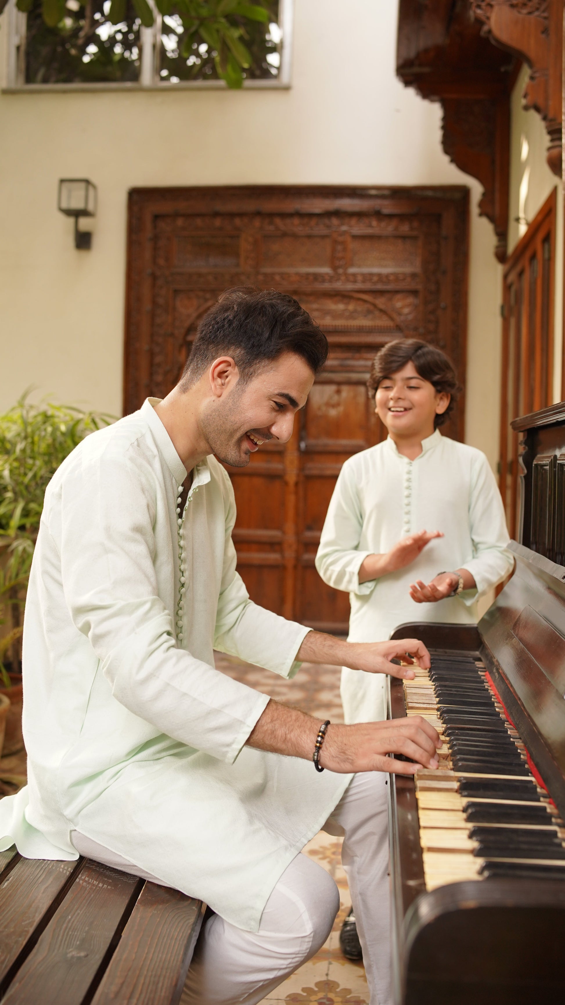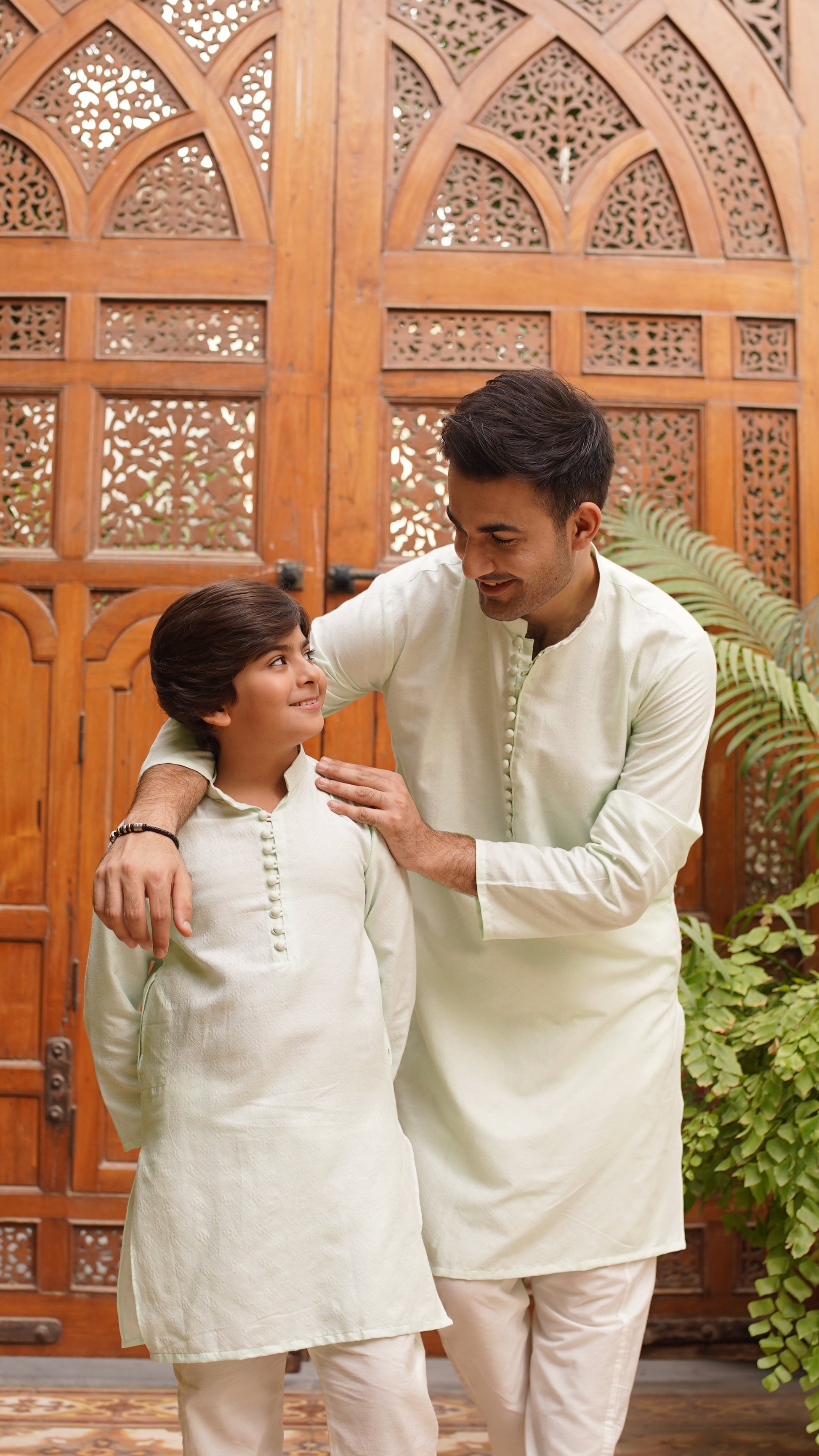 Kurta is khaddi cotton Jacquard self embossed, with ball buttons, white pajama, kurta color is light green